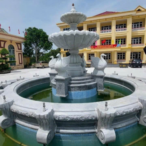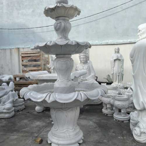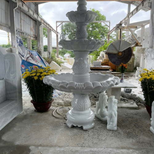 Các mẫu Đài phun nước bằng đá được điêu khắc, chạm trỗ tại Cơ sở chúng tôi được làm từ đá tự nhiên và nguyên khối. Từ một cục đá to vài chục tấn sẽ cắt ra khổ tương ứng với từng mẫu đài phun nước và kích thước, từ đó tiến hành điêu khắc, tiện, chạm trỗ cho hoàn chỉnh. Đá Cẩm thạch (hay còn gọi là đá Marble) là loại đá phổ biến nhất để làm tượng đá mỹ nghệ cũng như Đài phun nước bằng đá đá. Ngoài ra còn có loại Đá Xanh Ấn Độ được nhập khẩu trực tiếp từ Ấn Độ có thể làm Đài phun nước nhưng giá thành cao hơn đá cẩm thạch từ 2-3 lần nhưng được cái chắc đá hơn và màu xanh rất đẹp. Đá xanh Ấn Độ thì kích thước cũng khá to, có thể lên đến hơn 4m.