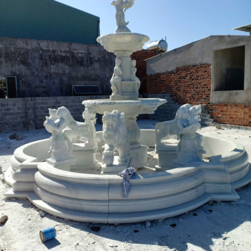 Các mẫu Đài phun nước bằng đá được điêu khắc, chạm trỗ tại Cơ sở chúng tôi được làm từ đá tự nhiên và nguyên khối. Từ một cục đá to vài chục tấn sẽ cắt ra khổ tương ứng với từng mẫu đài phun nước và kích thước, từ đó tiến hành điêu khắc, tiện, chạm trỗ cho hoàn chỉnh. Đá Cẩm thạch (hay còn gọi là đá Marble) là loại đá phổ biến nhất để làm tượng đá mỹ nghệ cũng như Đài phun nước bằng đá đá. Ngoài ra còn có loại Đá Xanh Ấn Độ được nhập khẩu trực tiếp từ Ấn Độ có thể làm Đài phun nước nhưng giá thành cao hơn đá cẩm thạch từ 2-3 lần nhưng được cái chắc đá hơn và màu xanh rất đẹp. Đá xanh Ấn Độ thì kích thước cũng khá to, có thể lên đến hơn 4m.