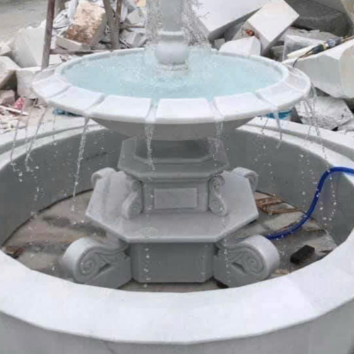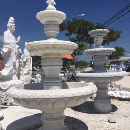 Các mẫu Đài phun nước bằng đá được điêu khắc, chạm trỗ tại Cơ sở chúng tôi được làm từ đá tự nhiên và nguyên khối. Từ một cục đá to vài chục tấn sẽ cắt ra khổ tương ứng với từng mẫu đài phun nước và kích thước, từ đó tiến hành điêu khắc, tiện, chạm trỗ cho hoàn chỉnh. Đá Cẩm thạch (hay còn gọi là đá Marble) là loại đá phổ biến nhất để làm tượng đá mỹ nghệ cũng như Đài phun nước bằng đá đá. Ngoài ra còn có loại Đá Xanh Ấn Độ được nhập khẩu trực tiếp từ Ấn Độ có thể làm Đài phun nước nhưng giá thành cao hơn đá cẩm thạch từ 2-3 lần nhưng được cái chắc đá hơn và màu xanh rất đẹp. Đá xanh Ấn Độ thì kích thước cũng khá to, có thể lên đến hơn 4m.