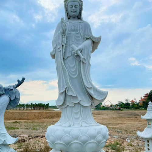 Phật Quan Âm bằng Đá Non Nước cũng là một trong những bức tượng phật được yêu thích và điêu khắc nhiều nhất lại Làng Đá Non Nước Đà Nẵng bởi vẻ đẹp bình an, thánh thiện và chở che cho muôn dân. Quan Âm, nguyên quán là Quán Thế Âm hay là Bồ Tát Quán Thế Âm hoặc Quan Thế Âm Bồ Tát.